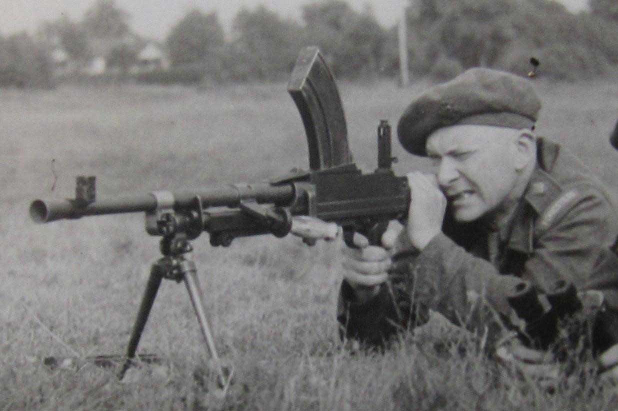 Bren is a series of light machine guns developed by Britain in the 1930s and used in various roles until 1992. It features a distinctive top-mounted curved box magazine, conical flash hider, and quick change barrel. The name Bren was derived from Brno, the Czechoslovak city in Moravia, where the Zb vz. 26 was designed and Enfield, site of the British Royal Arms Factory. Gas-operated, the Bren used the same .303 ammunition as the standard British bolt-action rifle, the Lee-Enfield, firing at a rate of between 480 and 540 rounds per minute (rpm) depending on the mode.