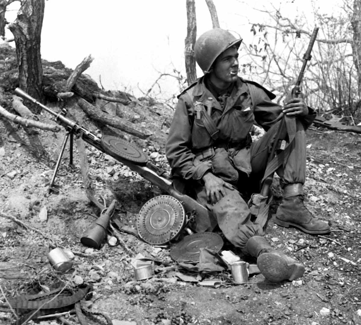 The Degtyaryov machine gun or DP-28 is a light machine gun firing the 7.62x54mmR cartridge that was used by the Soviet Union after its deployment in 1928. Used in aircrafts and equipped on all Soviet tanks in WWII, one of the DP-28’s defining characteristics was the pancake magazine it used which led to its nickname “the record player”. However these magazines were easily damaged while being transported and were time consuming to reload.