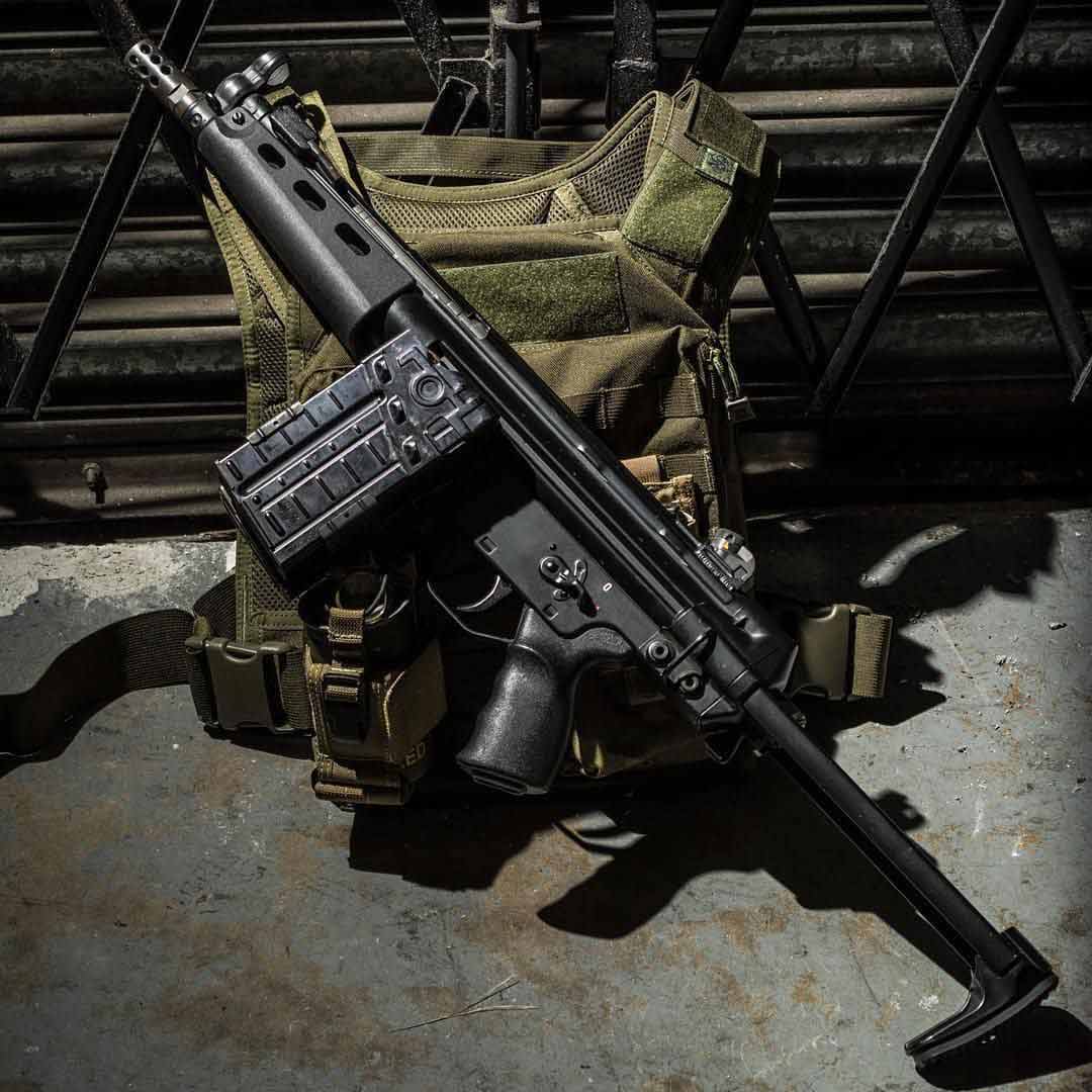 The HK51 is a variant of the G3 which is a select-fire battle rifle developed in the 1950’s by Heckler & Koch. The HK51 in particular is not made by H&K, and is rather a creation of the American Class II manufacturing after-market. While the HK51 does not have any real standards, it is usually a modified G3A3, or the semi automatic HK41 and HK91, with MP5 furniture and accessories as well as a collapsible stock.