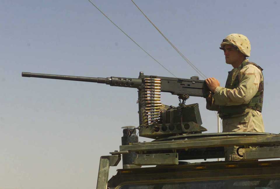 The M2 Machine Gun or Browning .50 Caliber Machine Gun is a heavy machine gun designed towards the end of World War I by John Browning. The M2 has been referred to as “Ma Deuce”, as a GI phonetic slang or “the fifty” in reference to its caliber. It is effective against infantry, unarmored or lightly armored vehicles and boats, light fortifications and low-flying aircraft. The M2 machine gun has been in production longer than any other machine gun.