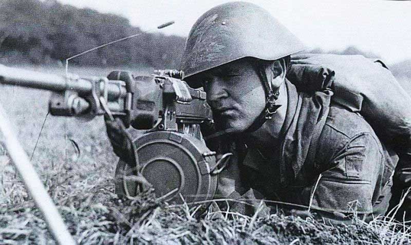 The RPD is a 7.62 mm light machine gun that is a belt fed version of the DP machine gun of WWII. Developed by the Soviet Union in 1943, the RPD is a precursor to most squad automatic weapons (SAW) and was later replaced by the RPK. Designed to be simple, rugged and reliable, the RPD was replaced by the RPK in the 1960’s, the RPD is still used in African and Asian nations.