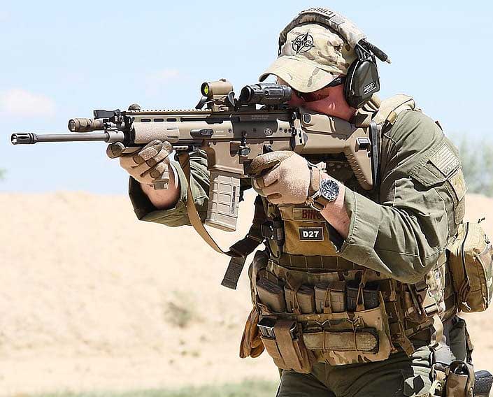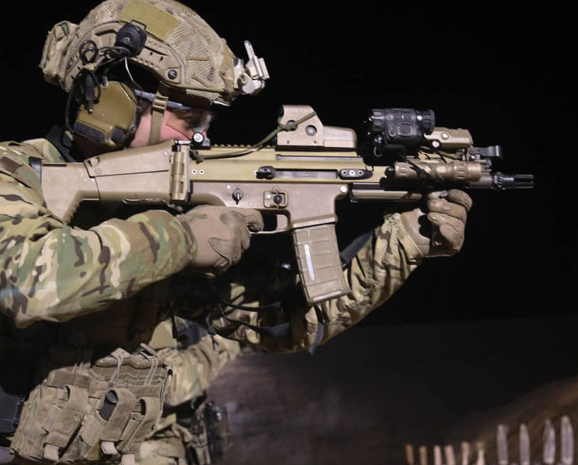 The FN SCAR is a combat assault rifle developed by Belgian manufacturer FN Herstal for the United States Special Operations Command (SOCOM). The SCAR was developed with two different types of ammunition: The SCAR-L for light chambered in 5.56x45mm NATO and the SCAR-H for heavy chambered in 7.62x51mm NATO. While the SCAR-L was not as popular, the SCAR-H is now in widespread use by the United States where the light weight, accuracy, and stopping power have proved worth on the battlefield.